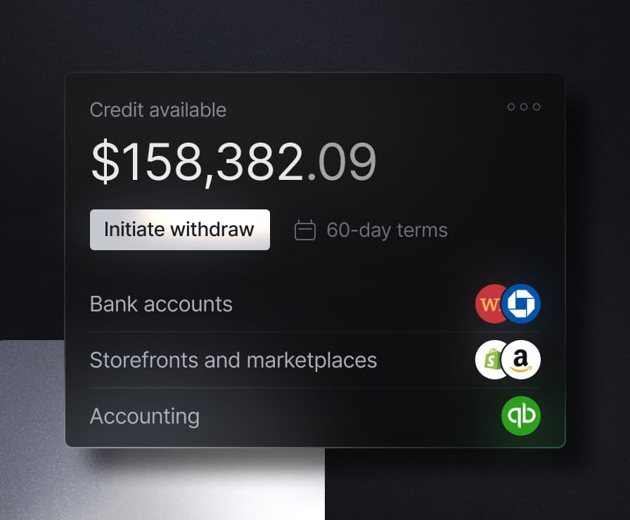 Access working capital with 1-click, tailor made for e‑commerce. Simple underwriting process with no hard credit pulls.