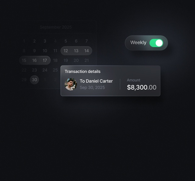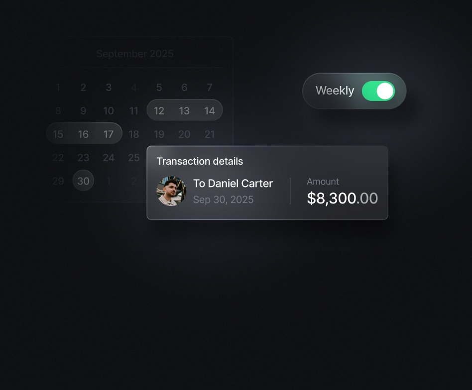 Automate payments to run exactly when you need — weekly, monthly, or on your custom cadence.